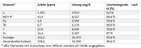 Zwei Ionenaustausch-(„IX“)-Medien wurden hinsichtlich der Gewinnungsrate von REEs aus der gelaugten Lösung getestet. Beide Medien zeigten eine hohe Gewinnungsrate bei allen REEs und Yttrium. In der nachfolgenden Tabelle sind der Zufuhrwert, die Konzentrationen in der Laugungslösung sowie die endgültige IX-Gewinnungsrate für ausgewählte Elemente zusammengefasst.