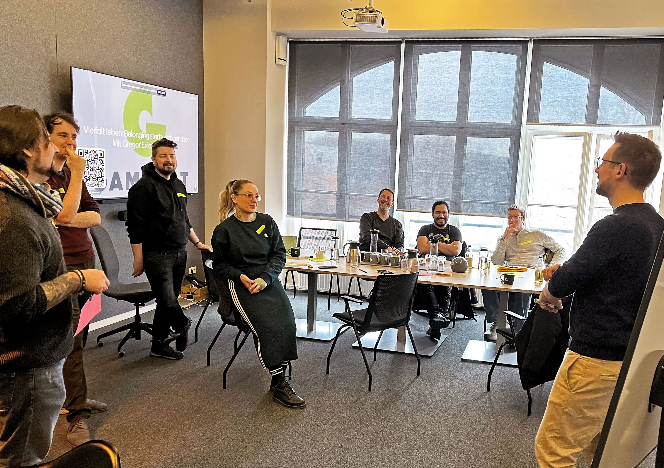 Vielfalt ist bei GAMOMAT fester Bestandteil der Kultur. Deshalb gehört eine umfassende Schulung zu Inklusion und Diversity verpflichtend zum Onboarding aller neuen Mitarbeitenden. In der sogenannten GAMOcademy, einem internen Upskilling-Format für wirksame (Zusammen-)Arbeit, wird neben der Selbst- und Sozialkompetenz zugleich auch Zusammenhalt und Identifikation gestärkt.
