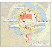 Das Uranprojekt Douglas River befindet sich etwa 15 Kilometer südlich der Gorilla Lake-Claims von Kirkstone. Mit der Hinzufügung von Douglas River verfügt Kirkstone nun über insgesamt 8.230,9 Hektar Mineralienkonzessionen im Bezirk Cluff Lake, die zusammen als Carswell Complex-Projekt bezeichnet werden. Eine Lagekarte, die Douglas River in Bezug auf das Gorilla Lake-Projekt und die umliegenden geologischen Merkmale zeigt, ist als Abbildung 1 unten enthalten.