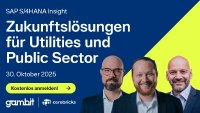 Die SAP-Experten von GAMBIT Consulting und cerebricks informieren am 30. Oktober 2025 darüber, wie Unternehmen aus der Energieversorgungsbranche und dem öffentlichen Sektor mit SAP S/4HANA Cloud, SAP Public Cloud, SAP S/4HANA Utilities, KI und weiteren digitalen Innovationen den digitalen Wandel erfolgreich gestalten. Die Teilnahme ist kostenfrei.