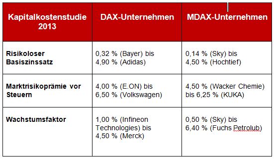 S&P Kapitalkostenstudie 2013 zu 30 DAX-Unternehmen und 35 MDAX-Unternehmen