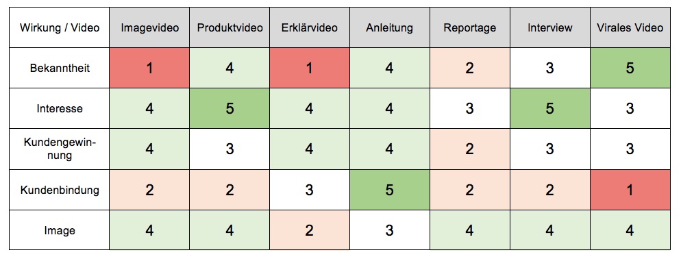 Die Auswahl der Videoarten sollte sich an den Zielen und der Zielgruppe orientieren, weil nur darauf abgestimmte Videos effektiv für das Unternehmen sind. Einen Einblick in die Artenvielfalt von Videos geben die folgenden Stichpunkte: